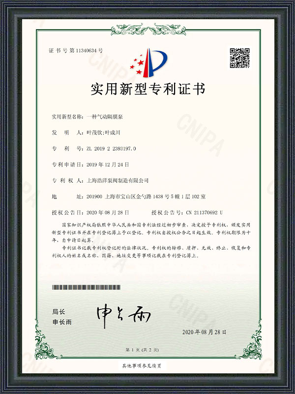 Utility Model Patent Certificate