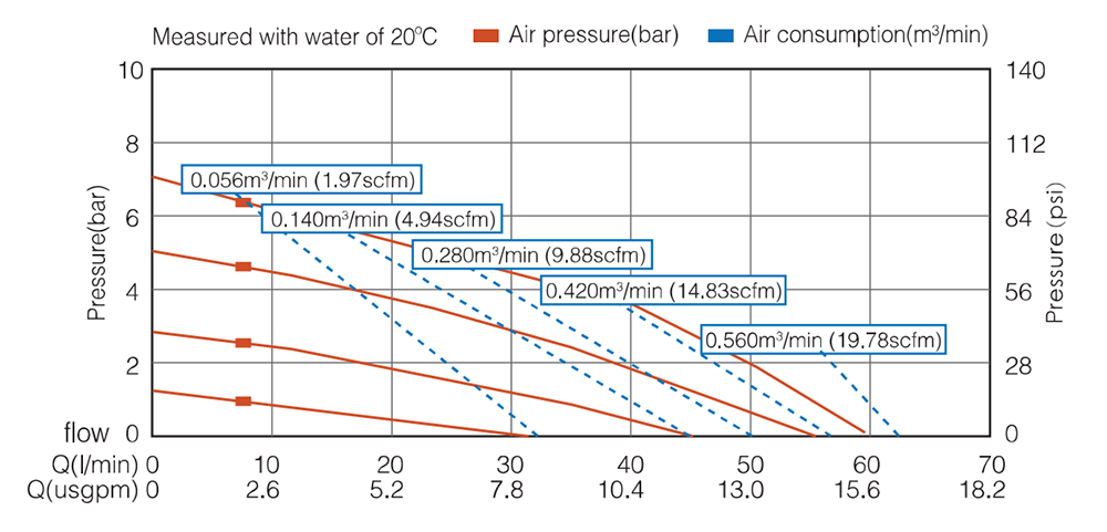 Max. Suction Lift Suction height changes with the different combinations of ball, seat and the diaphragm materials. |