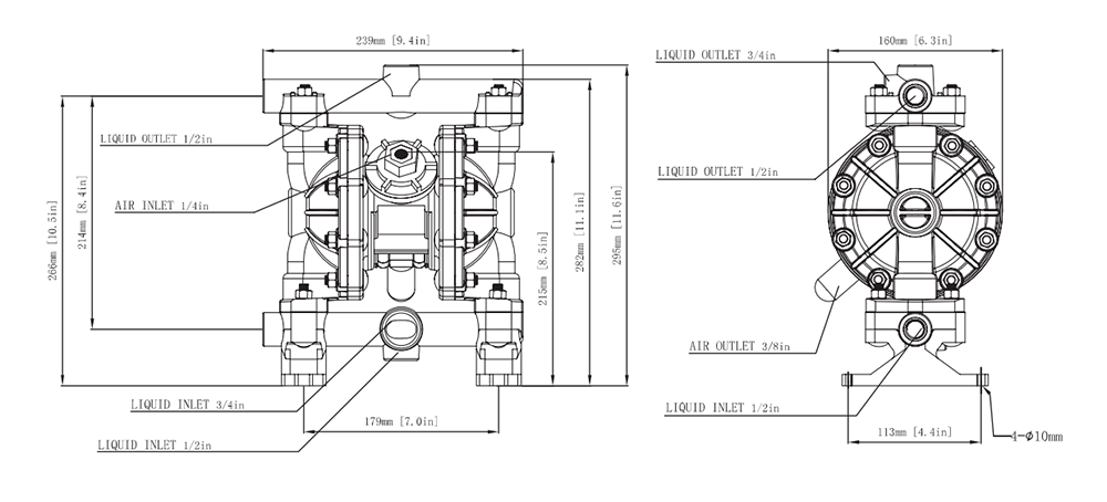 Fluid inlet/outlet size 1/2",3/4" Air inlet size 1/4" Max suction lift D...