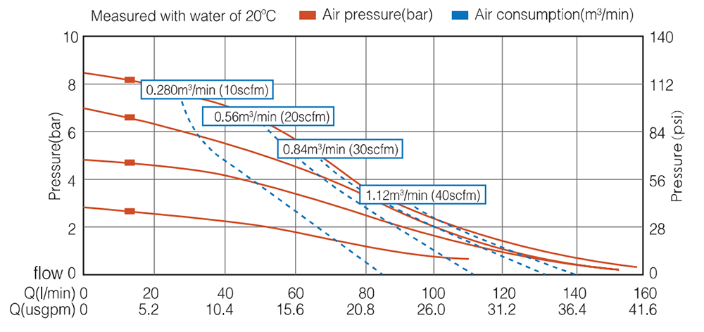 Max. Suction Lift Suction height changes with the different combinations of ball, seat and the diaphragm materials. |