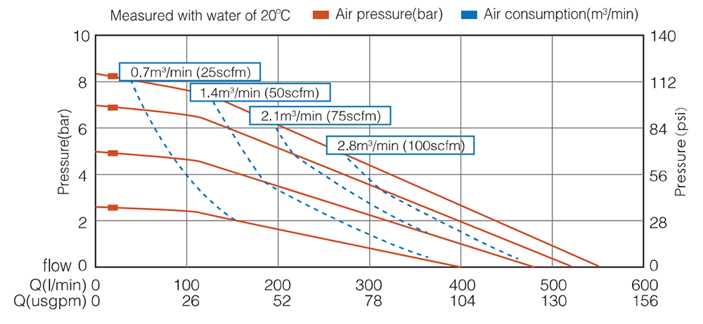 Max. Suction Lift Suction height changes with the different combinations of ball, seat and the diaphragm materials. |