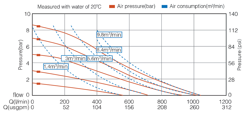 Max. Suction Lift Suction height changes with the different combinations of ball, seat and the diaphragm materials. |