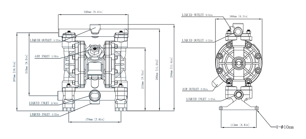 Fluid inlet/outlet size 1/2",3/4" Air inlet size 1/4" Max suction lift D...