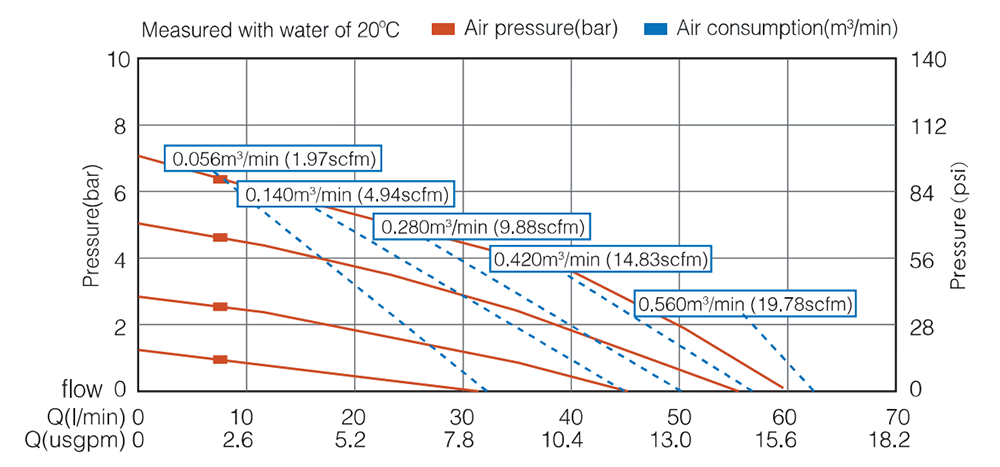 Max. Suction Lift Suction height changes with the different combinations of ball, seat and the diaphragm materials. |
