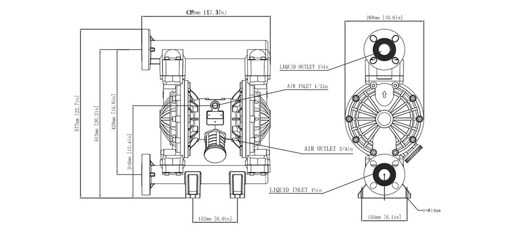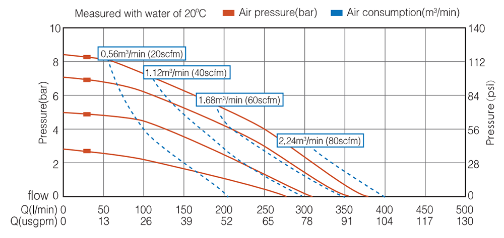 Fluid inlet/outlet size 1/2",3/4" Air inlet size 1/4" Max suction lift D...