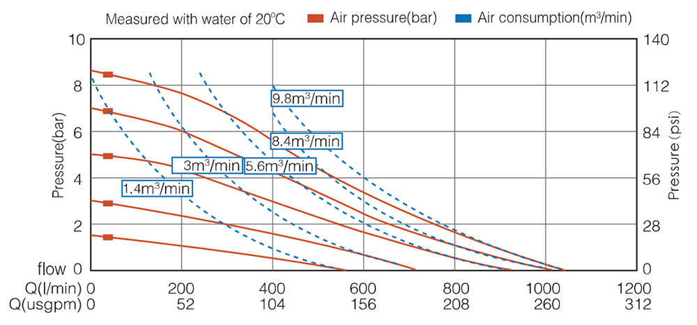 Max. Suction Lift Suction height changes with the different combinations of ball, seat and the diaphragm materials. |